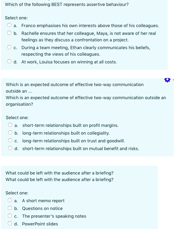 Solved Which Of The Following Best Represents Assertive Chegg Com